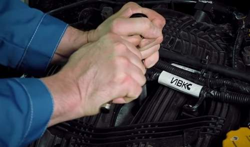 Откручиваем болт крепежа катушки зажигания при помощи головки E5.